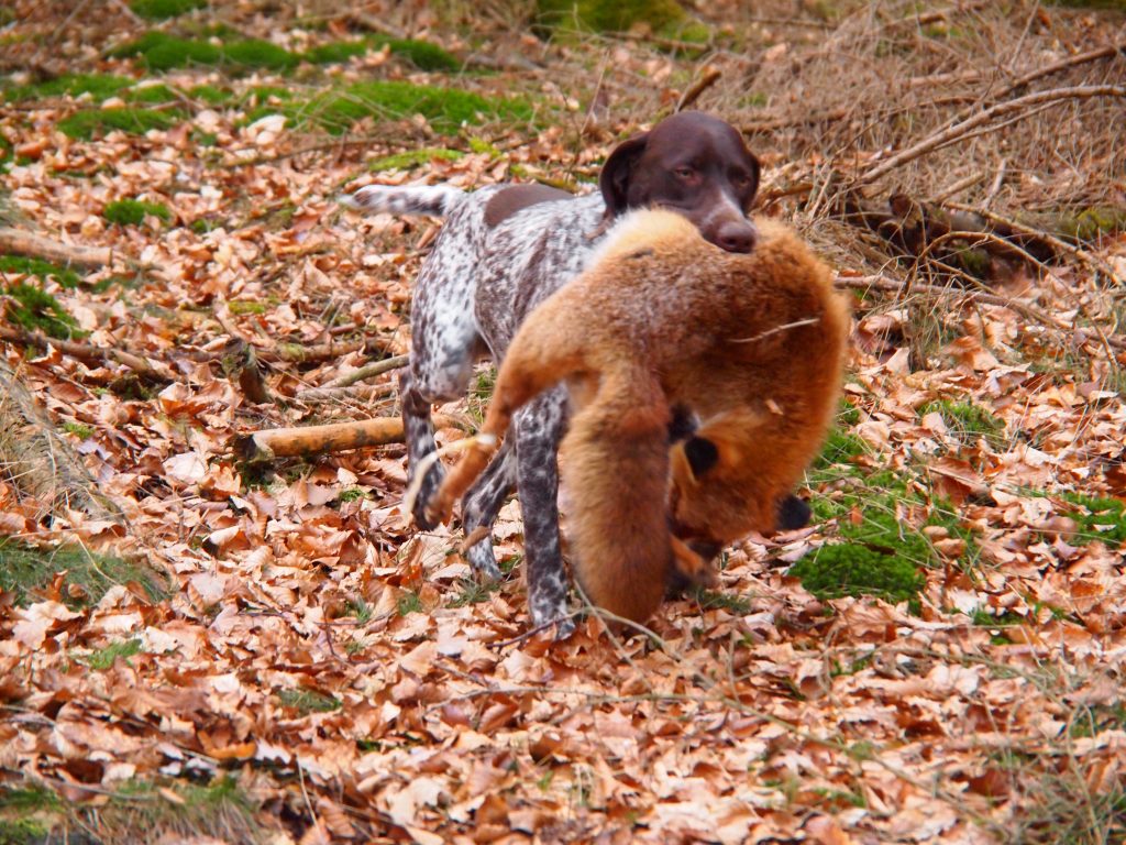 Beschreibung: Takko Pöttmes ist ein charaktervoller, eleganter Brschl.-Rüde mit korrektem Gangwerk und liegt mit 64 cm Stockmaß im Mittelschlag. Er besticht durch sein absolut ruhiges, ausgeglichenes und abgeklärtes Wesen, welches ihm und seinem Führer vor allem auf Schweißfährten sehr zugute kommt. Sein Sozialverhalten, auch seinen Artgenossen gegenüber, ist vorbildlich, was sich auch im heimischen großen Auslaufzwinger, wo er überwiegend mit seiner Mutter und einem älteren Rüden zusammenlebt, widerspiegelt. Seine Feinnasigkeit, welche er mit seinen Wurfgeschwistern gemein hat, zeigt sich vor allem im weiten Anziehen und festen Vorstehen von gefundenen Wild. Seine Suche ist weiträumig und immer dem Gelände angepasst. Auch im Wasser kommt seine Passion durch sein Durchhaltevermögen und Finderwillen zum Tragen. Seine familienfreundliche Art hindert ihn jedoch nicht daran, seine Raubwildschärfe am Waschbären zu zeigen, wenn es erforderlich ist. Er ist ein Teamplayer, der wenn nötig, auch mit wenig Führerunterstützung seine ihm gestellten Aufgaben meistern kann.